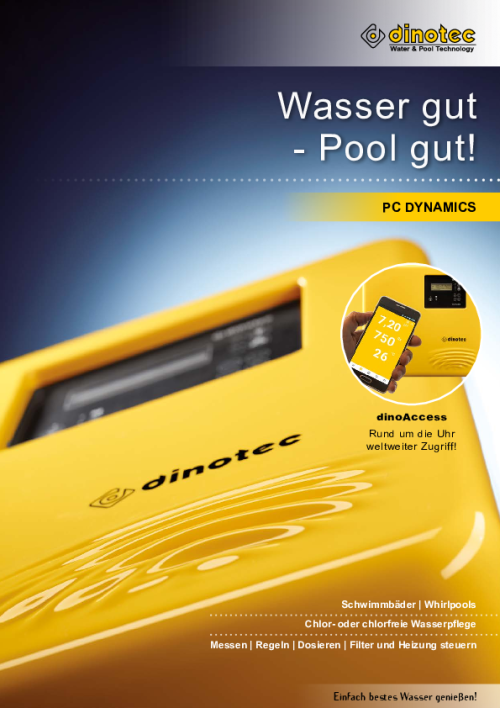 NEU: Der PC DYNAMICS kann über die App dinoAccess (Android, iOS) fernbedient werden. Der Poolbesitzer und bei Bedarf auch der Fachhändler haben (Internetverbindung vorausgesetzt) weltweit Zugriff auf die Anlage.