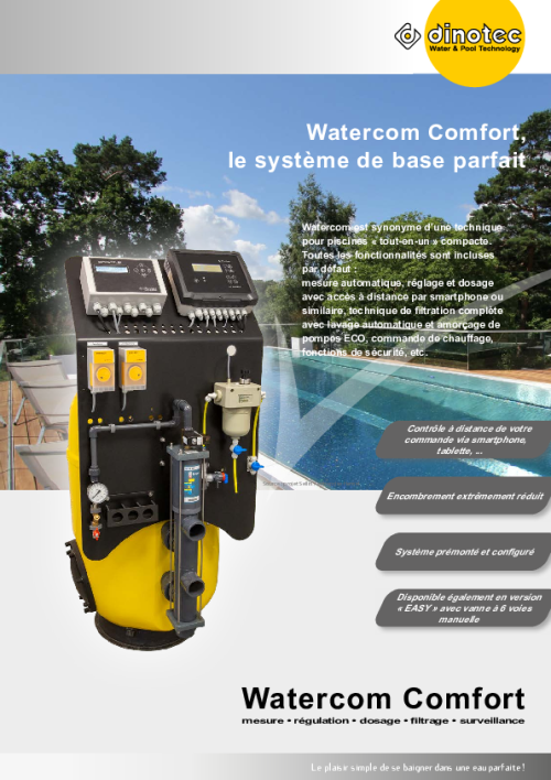 Watercom, das steht für kompakte, platzsparende „All in One“ Schwimmbadtechnik. Alles ist dabei: Automatisches Messen, Regeln und Dosieren mit Fernüberwachung per Smartphone o.Ä. Dazu die komplette Filtertechnik mit robuster Filterpumpe, energiesparender und geräuschreduzierender Filterpumpenregelung, Heizungssteuerung, Sicherheitsfunktionen etc. Mit einer Watercom sparen Sie wertvolle Zeit auf der Baustelle. Die Watercom VITALIA ist vorverdrahtet, vorkonfiguriert und nahezu komplett vormontiert. Die Filterpumpe ist vorverrohrt und sogar die Messwasserentnahme und -Rückführung sowie die Impfstellen für pH-Minus und Desinfektion sind bereits gesetzt. Mit der Watercom VITALIA ist beste Wasserqualität keine Frage des Preises mehr.