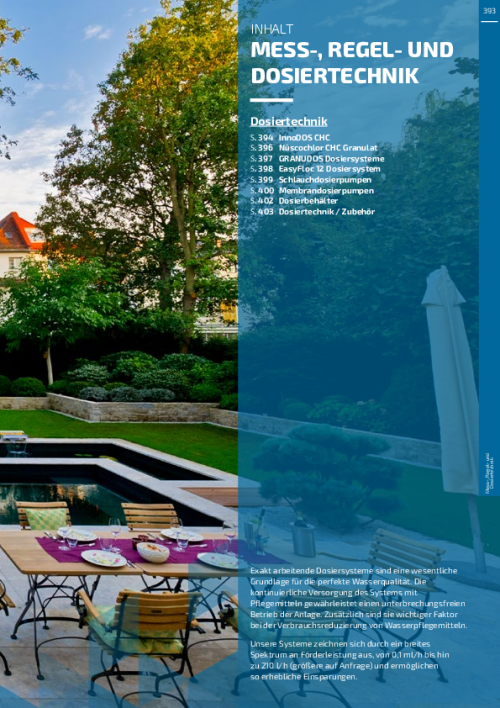 Auch in der Dosiertechnik zeigt sich unsere jahrzehntelange Erfahrung. Unterschiedlichste Dosiersysteme mit einem breiten Spektrum an Dosierleistungen sorgen vom privaten Pool bis hin zum Spaß- und Sportbad für perfekte Wasserqualität.