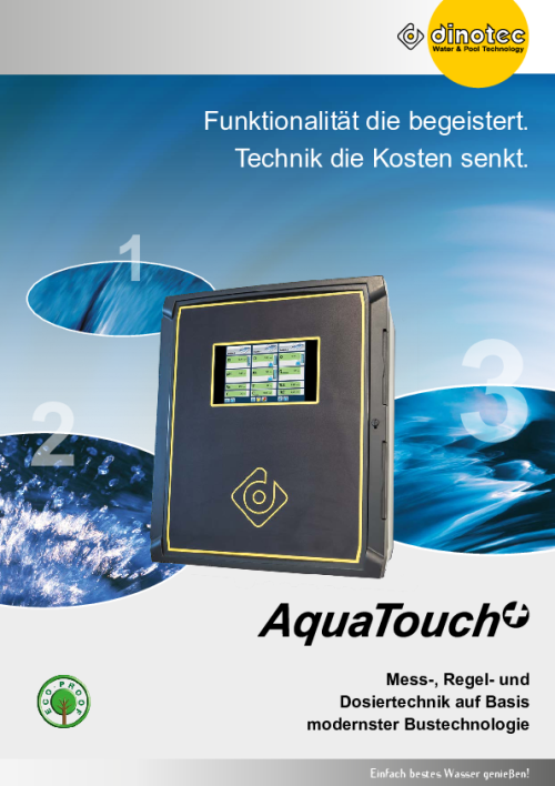 AquaTouch+ ListDas AquaTouch+ System wurde gemeinsam mit Profi-Anwendern entwickelt und ist zugeschnitten auf die Anforderungen von Schwimmmeistern, Betreibern, Kommunen, Hotels, Anlagenbauern, Planern und Wassertechnikern. Überall dort wo der Wasserqualität eine besondere Bedeutung zukommt, wird der AquaTouch+ eingesetzt. Er misst und regelt je nach Konfiguration pH, freies Chlor, Gesamtchlor, Poolcare, Brom, Redox-Spannung, Leitfähigkeit und die Temperatur. Der AquaTouch+ ist flexibel und frei skalierbar, er wächst mit den Anforderungen der Betreiber einfach mit.